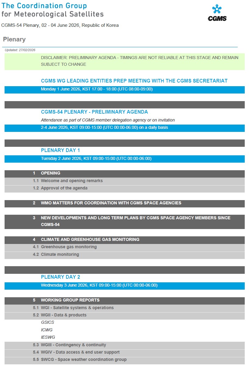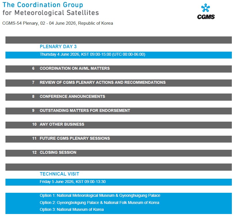 The 54th CGMS plenary session will be held on 2-4 June 2026 in Seoul, Republic of Korea.